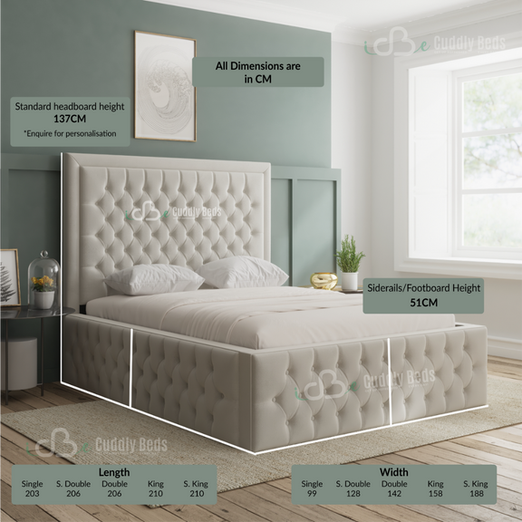 Please Note: To incorporate a Wingback headboard, the length changes by 5cm width of headboard will be around 10cm wider than bed.