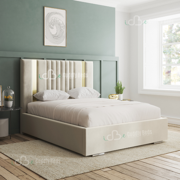 The headboard of the Rafferty Bed, which functions as a magnificent centerpiece, is its distinguishing characteristic. The headboard, which draws inspiration from the tall skyscrapers of global cities, features exquisitely designed lines that evoke the majesty and sophistication of metropolitan architecture. Two golden stripes elegantly cover each side of the headboard, highlighting its regal presence and adding a dash of glitz.